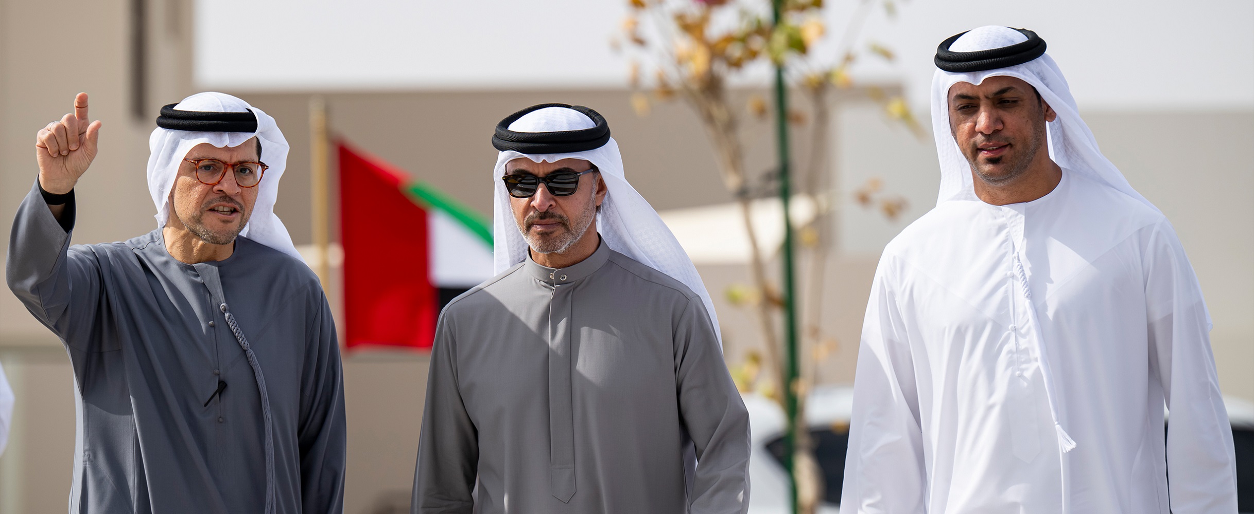 رافق سمو الشيخ هزاع بن زايد آل نهيان، خلال الزيارة، معالي الشيخ محمد بن حمدان بن زايد آل نهيان؛ ومعالي محمد علي الشرفا، رئيس مجلس إدارة هيئة أبوظبي للإسكان ومركز أبوظبي للمشاريع والبنية التحتية؛ وسعادة حمد حارب المهيري، مدير عام هيئة أبوظبي للإسكان؛ وسعادة راشد مصبح المنعي، مدير عام بلدية مدينة العين؛ وسعادة المهندس ميسرة محمود عيد، مدير عام مركز أبوظبي للمشاريع والبنية التحتية.